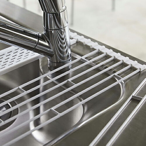 折り畳んで使ったり、 クルクル巻いて収納したり シンク上を有効活用できる水切りラック。